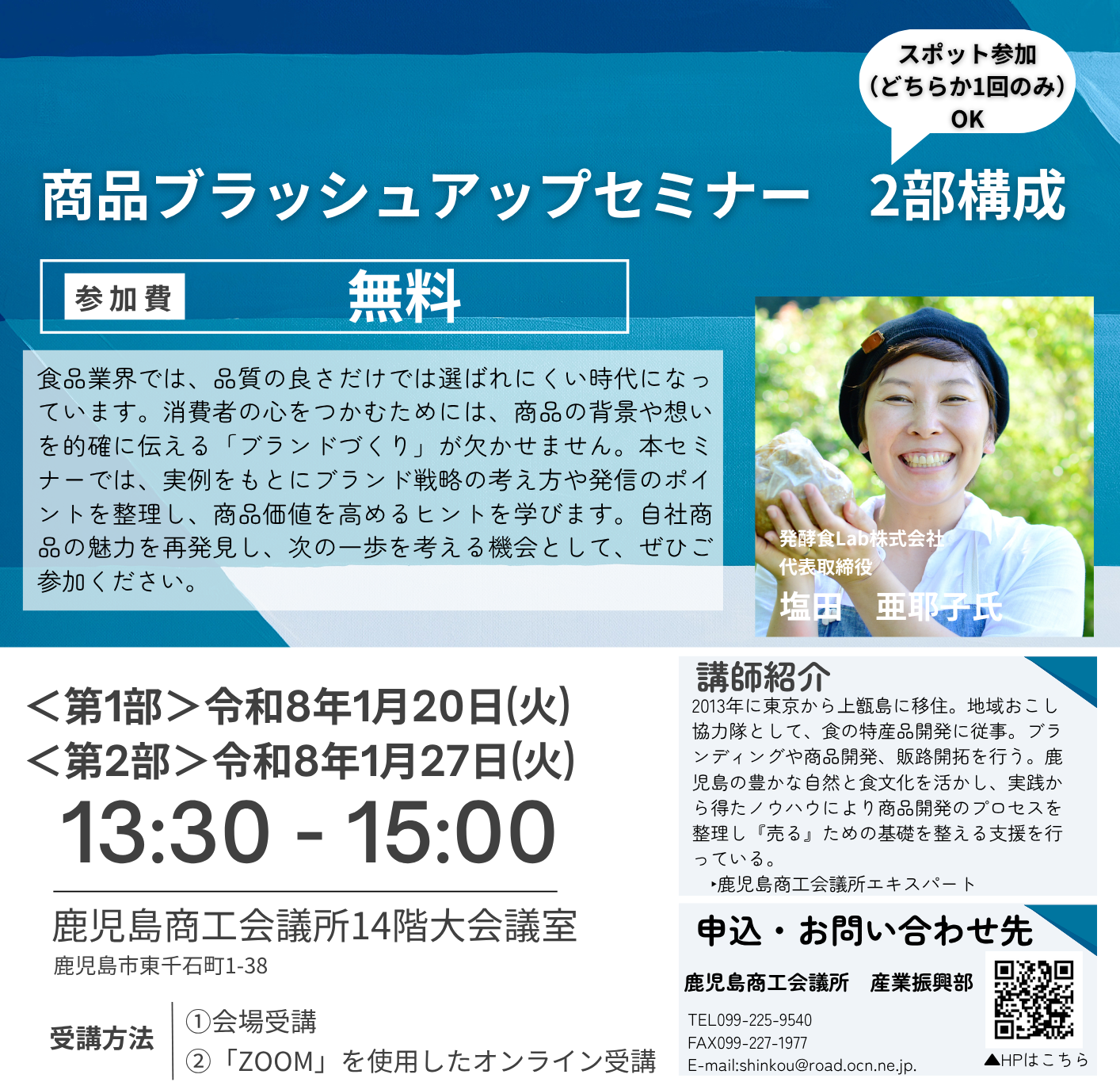 食品業界では、品質の良さだけでは選ばれにくい時代になっています。消費者の心をつかむためには、商品の背景や想いを的確に伝える「ブランドづくり」が欠かせません。本セミナーでは、実例をもとにブランド戦略の考え方や発信のポイントを整理し、商品価値を高めるヒントを学びます。自社商品の魅力を再発見し、次の一歩を考える機会として、ぜひご参加ください!