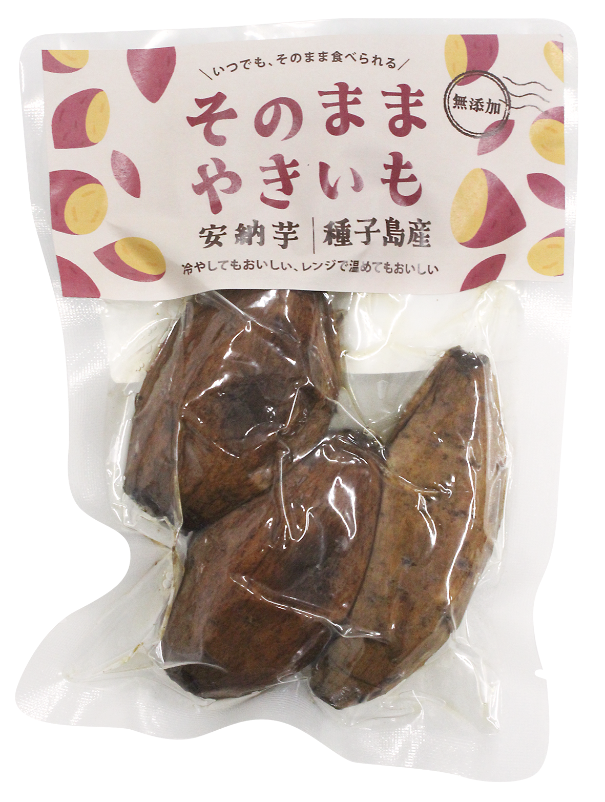 鹿児島県種子島産安納芋の素材本来の甘みを最大限に引き出し、 余計なものを加えず、そのままのおいしさをお届けできるよう仕上げております。 全国のみなさまにいつでもどこでもお手軽に、おいしい焼き芋を食べてもらいたいという思いで作りました。安納芋のもつねっとりとした奥深い甘みを是非お楽しみください。観光土産としてはもちろん、普段使いの無添加天然おやつとして、贈り物としても、幅広くご利用いただける商品です。