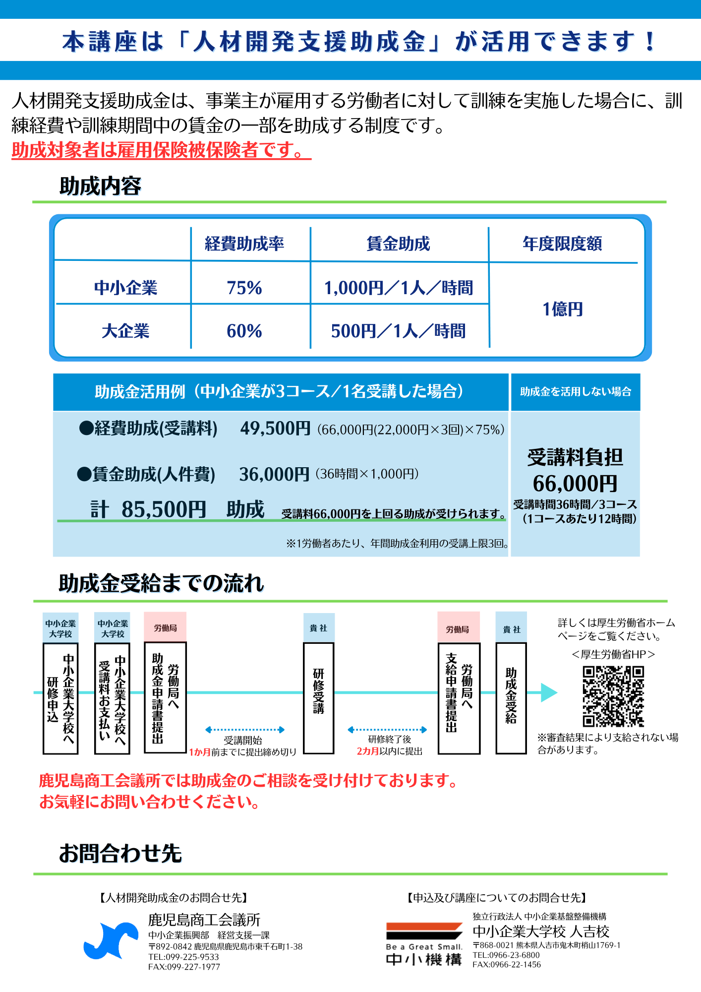 ※申込及び受講料支払窓口は。中小企業大学校人吉校となります。